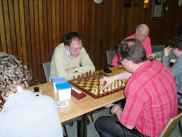 overtuigend de groep won met 10 uit 11. Mark verloor alleen verrassend van de sterk spelende Dick de Jong. Jan Eberle eiste de tweede plaats voor zich op met 9 uit 11. Op de gedeelde