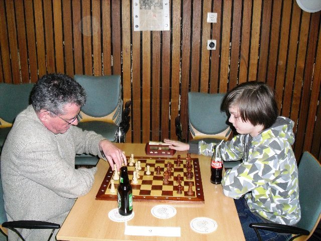 Koos Roeleveld speelden tegen elkaar. Koos dwong afgelopen dinsdag Anish Giri remise af tijdens een simultaan op het Haagse stadhuis, maar in Stijn moest hij zijn meerdere erkennen.