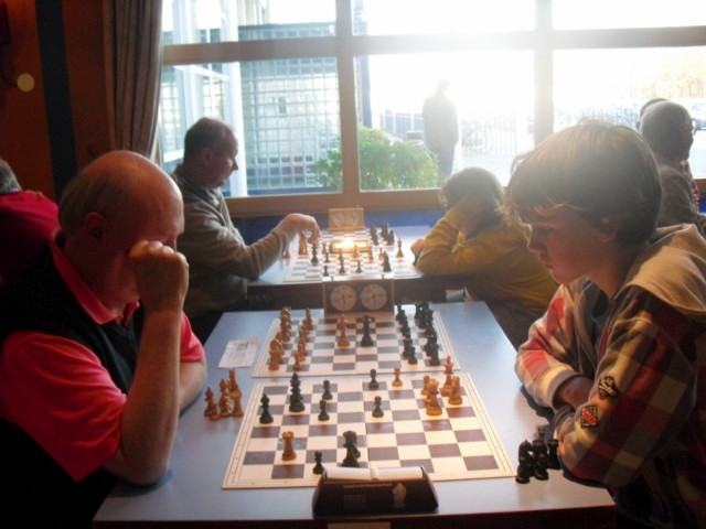Slechts enkele minuten na het begin van het toernooi arriveerde Wouter bij de sporthal. Hij kon alsnog aanschuiven aan bord vier van HSV 1.