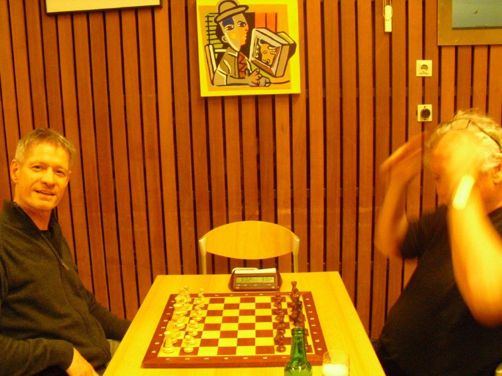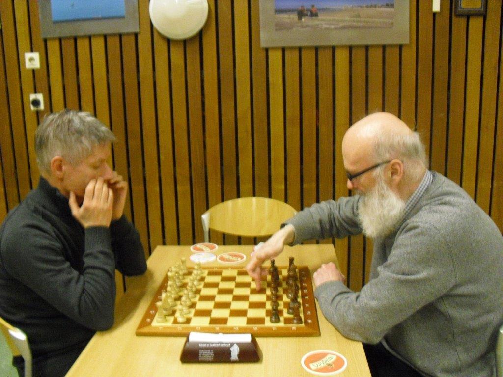 snel in zijn voordeel te beslissen. Hij won beide partijen. Bert zorgde voor een daverende verrassing door Ton uit te schakelen. In de eerste partij overzag
