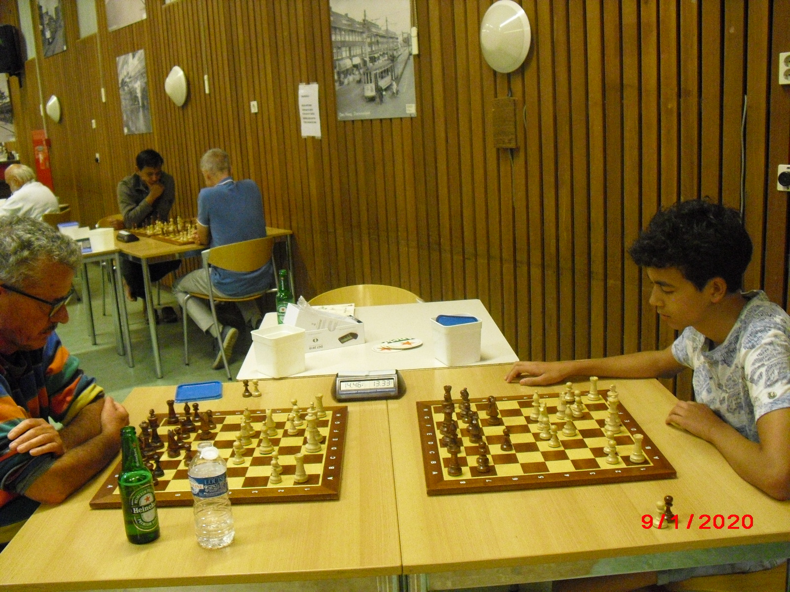 Dit was voor sommige spelers duidelijk wennen. In de eerste ronde werd de serene rust verstoord toen er aan het bord van Dirk de Jong en Dennis de Zwart gekrakeel ontstond over de juistheid van de stelling. “Nee, zo stond het niet”, hoorde ik zeggen. Hoe het dan wel stond was niet te achterhalen. Het is rapid en dan wordt er niet genoteerd. Na circa vijf minuten discussiëren besloten de heren tot opluchting van de overige schakers tot remise.